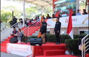 Bertindak selaku pembina apel Ketua Bawaslu Sulsel Mardiana Rusli menyampaikan beberapa hal dalam amanatnya.