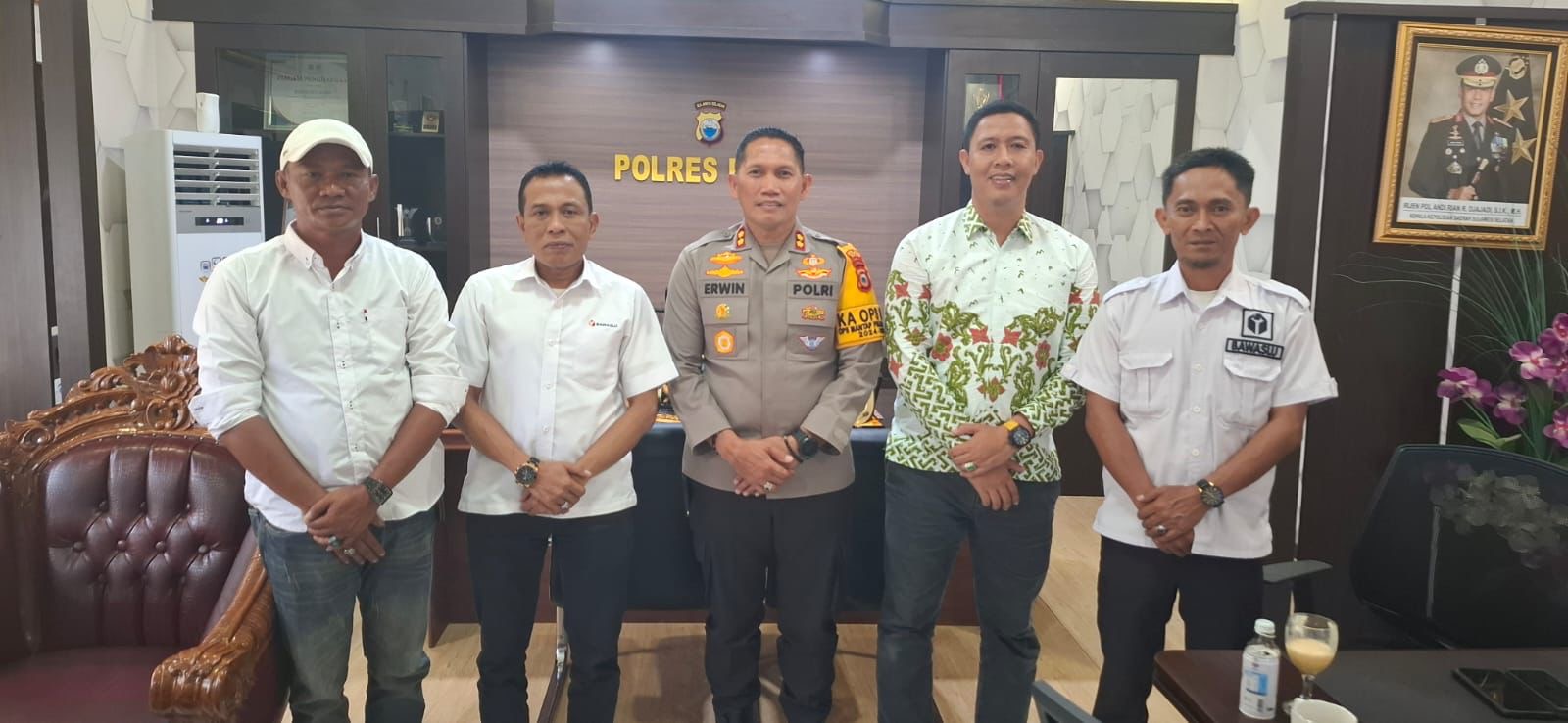 Silaturahmi dan koordinasi dimulai dengan mengunjungi Polres Bone. Rombongan Ketua dan Anggota Bawaslu Bone Alwi, Nur Alim, Rohzali, serta didampingi staf Skeretariat Bawaslu Bone disambut oleh Kapolres Bone AKBP Erwin Syah S.I.K,. M.H.