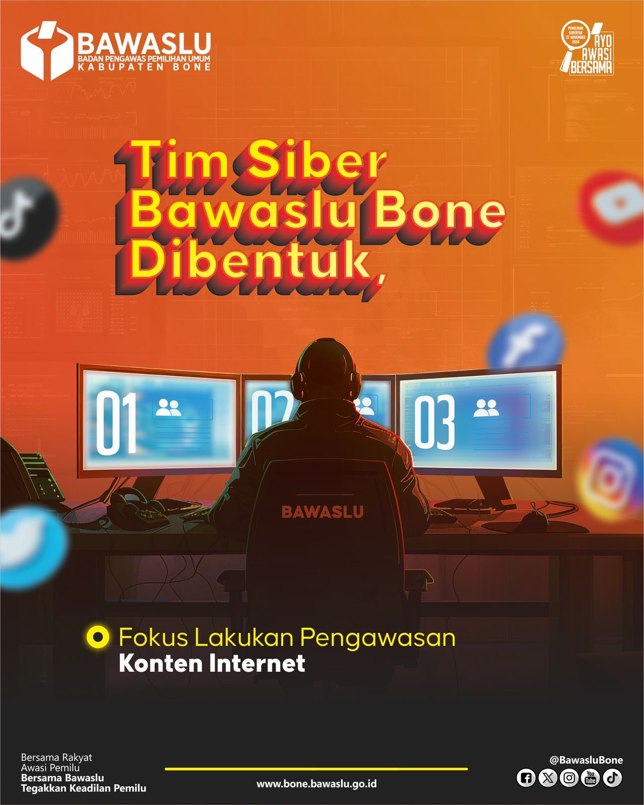 Majalahmitos.com-Bone, Media sosial menjadi wadah yang tidak luput dari pengawasan Tahapan Pemilihan tahun 2024 yang berjalan. Bawaslu Bone membentuk Tim Fasilitasi (Pengawasan) Konten Internet (Siber) yang berfokus pada pengawasan materi/konten dalam di internet.