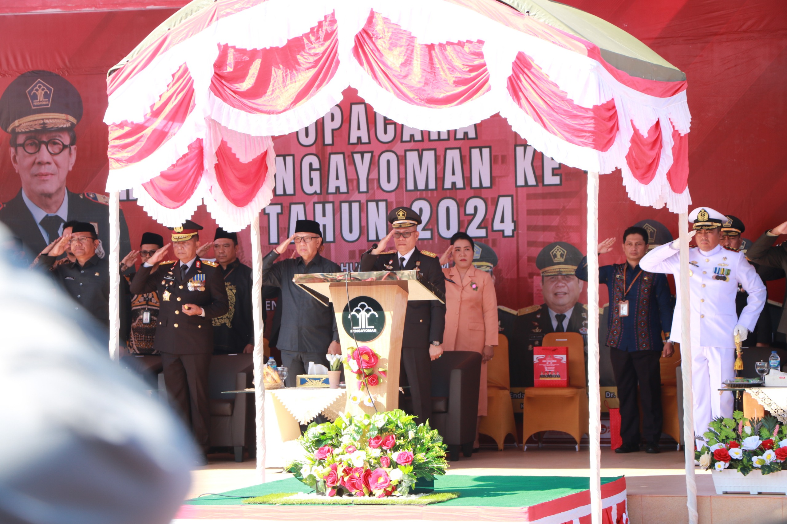 Upacara peringatan Hari Pengayoman Ke-79 Tahun 2024 dilingkungan Kantor Wilayah Kemenkumham Gorontalo, bertindak sebagai Inspektur Upacara Kepala Kantor Wilayah Kemenkumham Gorontalo Dr. Pagar Butar Butar.