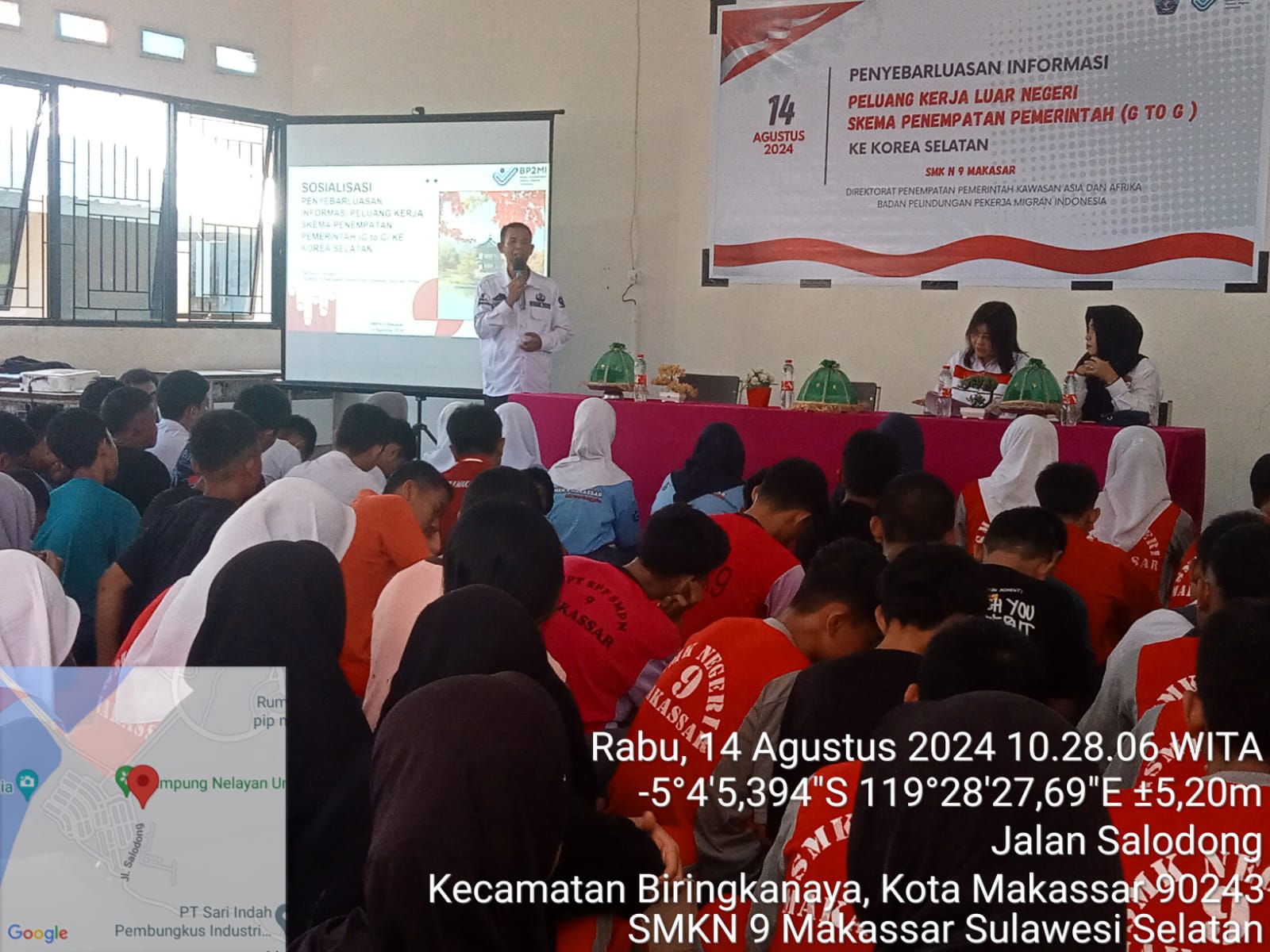 Kepala SMKN 9 Makassar Drs. Muhiding, M.Si, Rabu 14 Agustus 2024 mengatakan, selaku kepala sekolah, sangat bangga dan berbahagia karena kegiatan penyebarluasan informasi peluang kerja luar negeri.