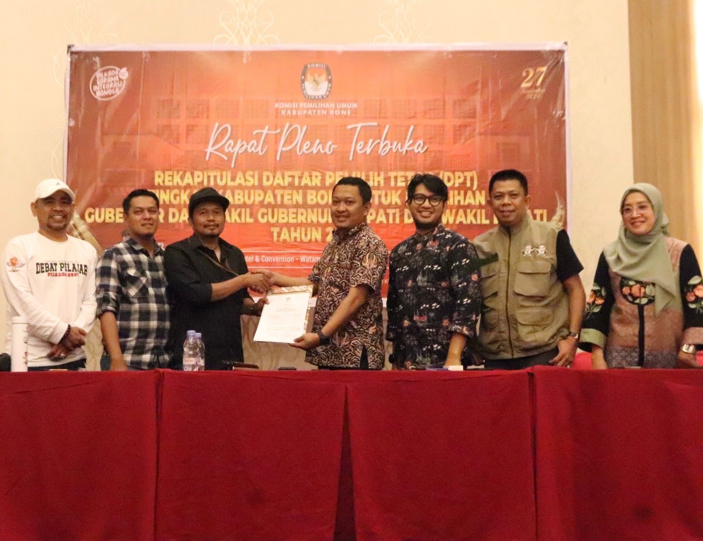 Pleno rekapitulasi DPT tingkat Kabupaten Bone ditutup oleh KPU Bone pada pukul 23.35 Wita.