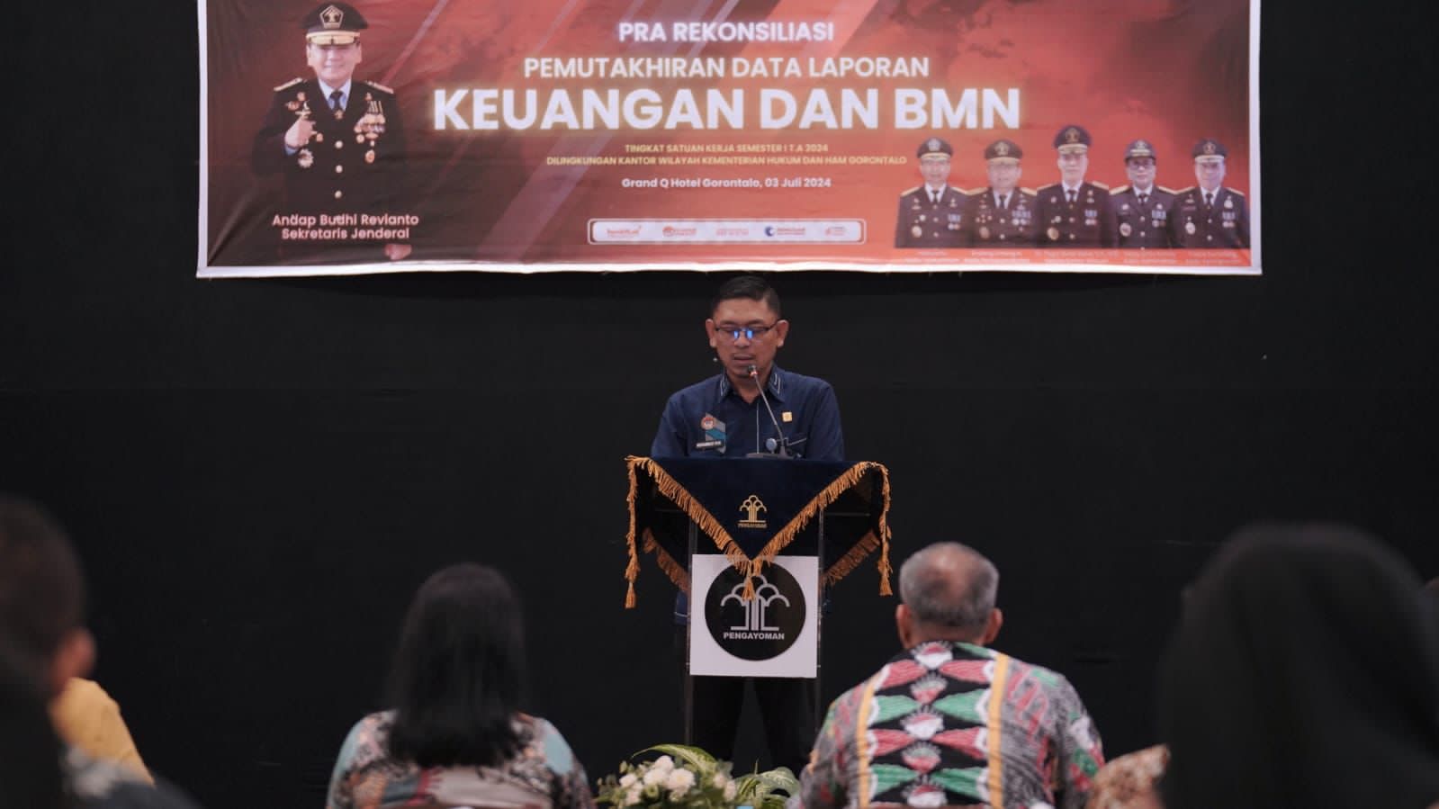 Penutupan pra rekonsiliasi ini dihadiri Kepala Kantor Wilayah Kemenkumham Gorontalo Pagar Butar Butar, Pimpinan Tinggi Pratama, Kepala UPT, Pejabat Administrator, Pejabat Pengawas, dan 41 orang peserta pengelola keuangan satker di lingkungan Kantor Wilayah Kemenkumham Gorontalo.