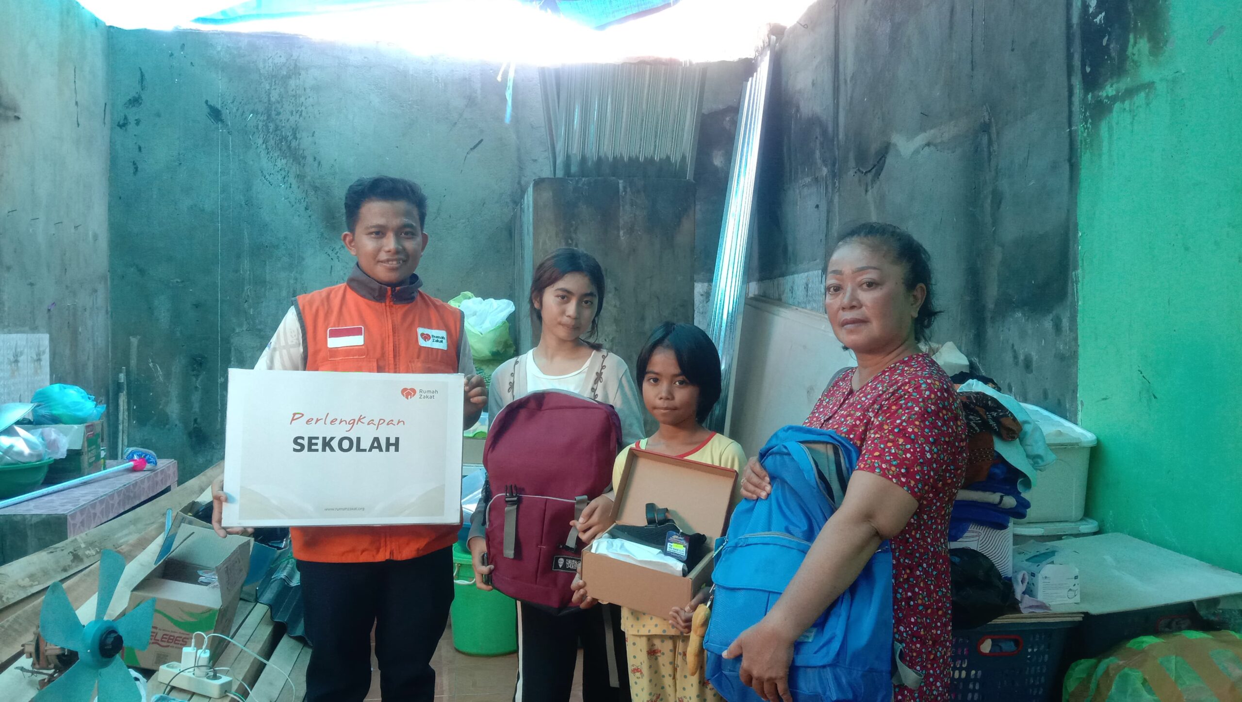 Karena semuanya hangus terbakar, Rumah Zakat menyalurkan 14 paket Perlengkapan sekolah yang berisikan Tas, seragam sekolah, buku tulis 1 pak, pulpen 1 dus, pensil 1 dus dan Sepatu untuk anak-anak penyintas kebakaran, Selasa 13 Agustus 2024.