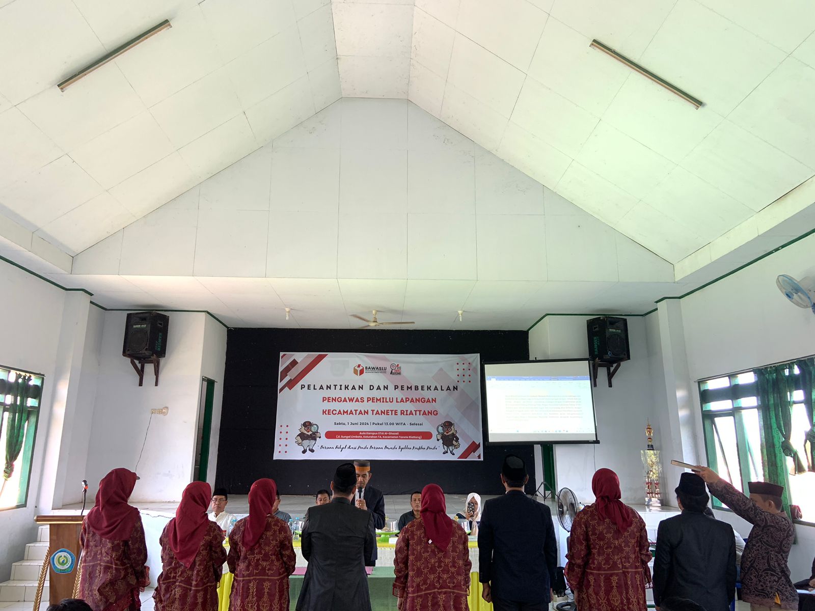Pelantikan ditandai dengan pengambilan sumpah dan janji jabatan oleh Ketua Panwaslu Kecamatan Tanete Riattang, Syarif Nur, S.Pd., M.Pd., diikuti seluruh anggota PKD/PPL di Kecamatan tersebut.