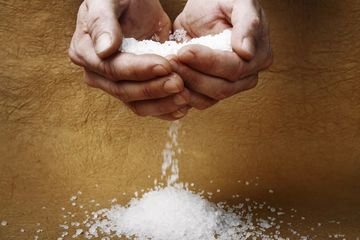 – Siapkan 200 gram garam dapur dan masukkan ke dalam baskom,