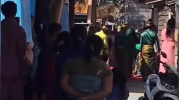 Tampak dalam video sekolompok orang berpakaian adat berwarna hijau merentangkan karpet berwarna merah di jalan setapak. Tak lama setelah itu, seorang berpakaian baju adat berwarna oranye keluar dari rumah dengan payung kebesaran berwarna emas.